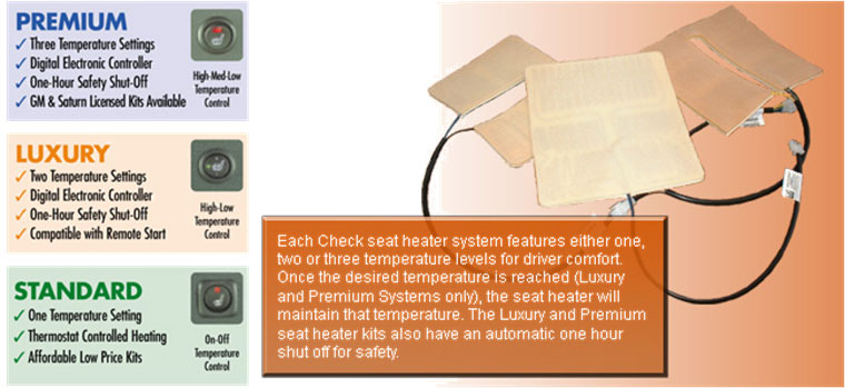 Each seat heater is individually fused and safely wired into the vehicle’s electrical system. A separate lighted switch is provided with each system.